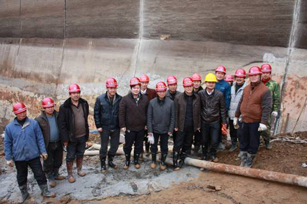 董事長、總經(jīng)理王元旦一行首先來到基坑澆筑、混凝土攪拌站等施工現(xiàn)場進(jìn)行察看,與施工人員一一握手,并聽取了春節(jié)期間帶領(lǐng)員工奮戰(zhàn)在施工一線的公司副總經(jīng)理聶玉和的生產(chǎn)情況匯報。董事長、總經(jīng)理王元旦詳細(xì)詢問了攪拌站的生產(chǎn)能力能否滿足施工要求,工程的進(jìn)展情況及后期施工中的各項措施,對項目部全體員工放棄節(jié)假日搶工期、保質(zhì)量、抓進(jìn)度的奉獻(xiàn)精神給充分肯定和高度評價,他勉勵大家保證質(zhì)量安全的前提下,抓緊時間完成大壩防滲面板的施工、再苦再累也要咬緊牙關(guān)挺過去,并要求施工項目部合理安排好大家春節(jié)期間的工作和生活。