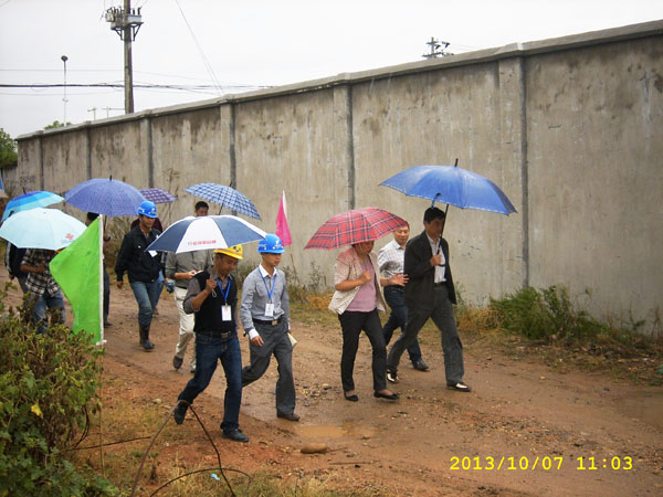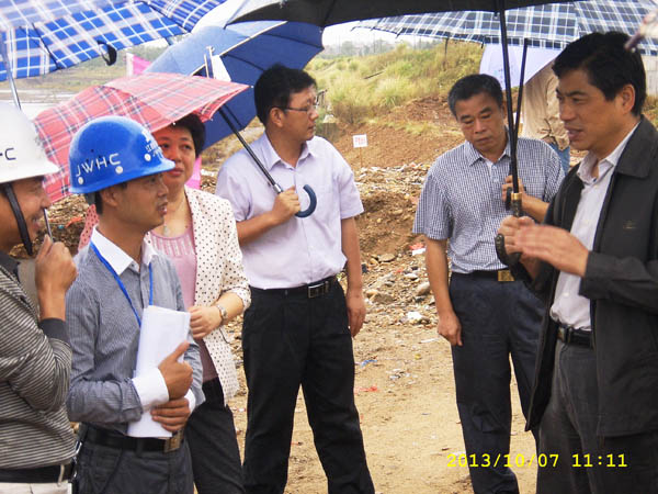 孫廳長一下車直奔工地施工現(xiàn)場,并主動(dòng)與現(xiàn)場施工人員握手。當(dāng)走到防洪墻施工現(xiàn)場時(shí),孫廳長停住腳步,聽取完施工情況匯報(bào)后,他對駐守在施工現(xiàn)場的參建各單位及個(gè)人表示問候,祝大家國慶節(jié)日快樂,他要求各單位再接再厲,按省五河辦的相關(guān)部署確保按期完工。最后,孫廳長要求各單位把好質(zhì)量和安全關(guān),確保工程完工不出任何事故。