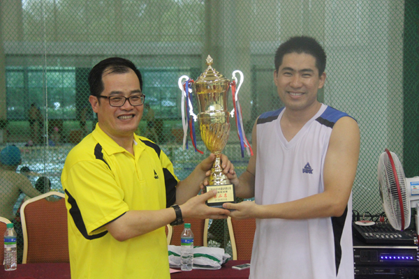 董事長王元旦(獎杯右)為冠軍頒發(fā)獎杯