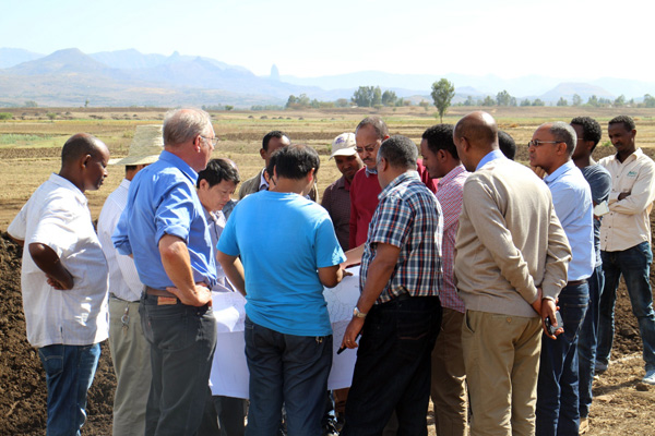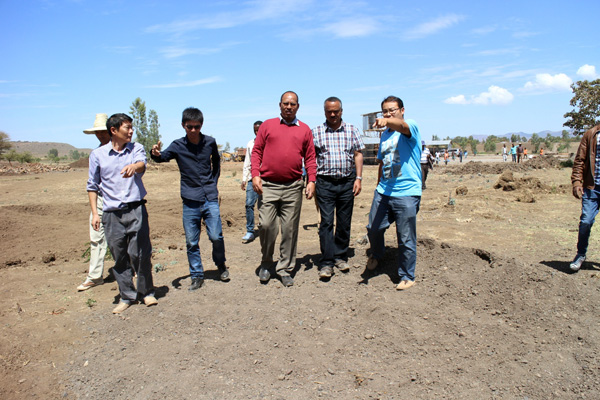 2016年3月20日,埃塞俄比亞聯(lián)邦水利能源部部長Motuma Mekesa閣下及副部長Kebede Gerba閣下帶領(lǐng)水利能源部尼羅河灌溉項(xiàng)目協(xié)調(diào)辦、阿姆哈拉州土地管理局、阿姆哈拉州尼羅河灌溉項(xiàng)目協(xié)調(diào)辦等項(xiàng)目各參建單位負(fù)責(zé)人到我公司承建的埃塞俄比亞Ribb一期灌溉項(xiàng)目視察。