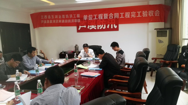 集團(tuán)資訊 2017年4月19日蘆溪縣五河治理防洪工程項(xiàng)目部在蘆溪縣主持召開了江西省五河治理防洪工程蘆溪縣袁河宣風(fēng)鎮(zhèn)段防洪項(xiàng)目單位工程暨合同工程完工驗(yàn)收會(huì)議。蘆溪縣五河治理防洪工程項(xiàng)目部、江西省水利規(guī)劃設(shè)計(jì)研究院、江西省建洪工程監(jiān)理咨詢有限公司、江西省水利水電建設(shè)有限公司、蘆溪縣宣風(fēng)鎮(zhèn)鎮(zhèn)人民政府和銀河鎮(zhèn)人民政府等單位代表參加了本次驗(yàn)收會(huì)議,并成立了單位工程暨合同工程完工驗(yàn)收工作組,萍鄉(xiāng)市水工程建設(shè)監(jiān)督管理站列席了本次會(huì)議。