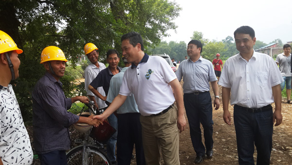 2014年8月8日上午,上饒市委書記陳俊卿一行來到我公司承建的玉山縣樟村鎮(zhèn)防洪工程檢查指導(dǎo)工作。來到施工現(xiàn)場,陳俊卿書記一行頂著炎炎烈日,深入查看并了解了防洪工程的投資規(guī)模和施工生產(chǎn)建設(shè)情況,隨后,項目部經(jīng)理楊小貴對項目完工后將產(chǎn)生的防洪生態(tài)效益作了簡單介紹,陳俊卿書記聽后非常高興,他指出,項目部和承建單位要齊心協(xié)力,加強安全生產(chǎn)管理,確保工程順利完工,早日造福當?shù)匕傩?。最后,陳俊卿書記還詢問了施工人員的生活情況,叮囑項目部既要保證工程施工進度,也要注意防暑工作,讓員工家屬放心。