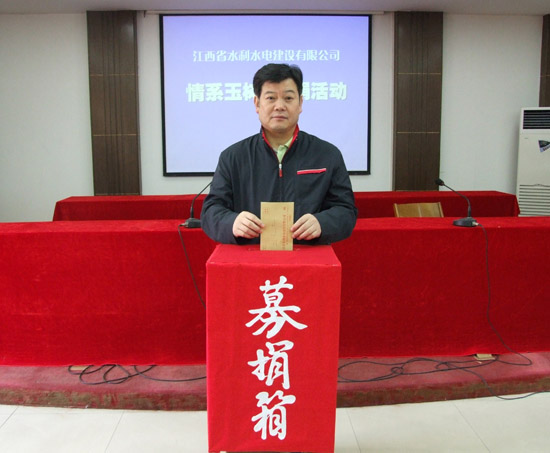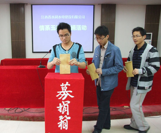 2010年4月14日,青海省玉樹縣發(fā)生兩次地震,最高震級(jí)7.1級(jí),造成了當(dāng)?shù)鼐薮蟮娜松韨龊拓?cái)產(chǎn)損失,“玉樹地震”牽動(dòng)著億萬(wàn)人民的心,也牽動(dòng)著我司所有員工的心!公司在全司范圍內(nèi)積極開展“情系玉樹募捐活動(dòng)”,4月26日,我公司南昌市機(jī)關(guān)總部首先開展了“情系玉樹募捐活動(dòng)”,公司中層以上管理人員和員工踴躍參與募捐活動(dòng),紛紛獻(xiàn)上自己的一份愛心,體現(xiàn)出江西水總?cè)说纳鐣?huì)責(zé)任感!同時(shí),各分公司、國(guó)內(nèi)外施工項(xiàng)目部也在開展此項(xiàng)活動(dòng),預(yù)計(jì)此項(xiàng)活動(dòng)將募得資金3萬(wàn)余元。