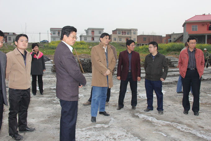 孫廳長(zhǎng)在九江縣江心洲察看砼四面六邊框架預(yù)制場(chǎng)