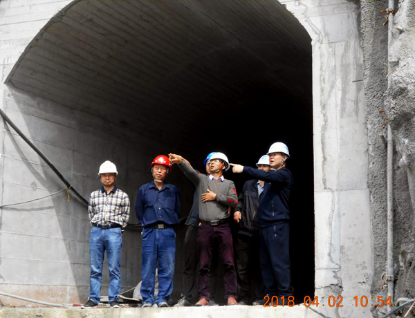 董事長在導(dǎo)流洞出口聽取項目經(jīng)理匯報工程進展情況