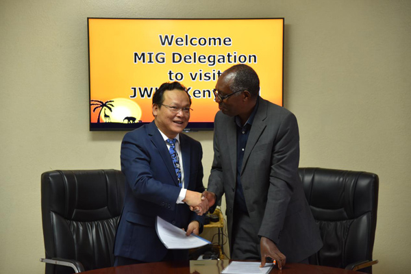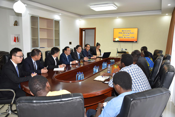 9月23日上午,盧旺達(dá)MIG考察團(tuán)一行來我肯尼亞公司參觀。海外公司總經(jīng)理黃鄭民,肯尼亞分公司總經(jīng)理賀翔,肯尼亞分公司副總經(jīng)理彭紅軍,肯尼亞分公司商務(wù)經(jīng)理黃飛翔,肯尼亞分公司財務(wù)經(jīng)理程炤宇等參加了會見。