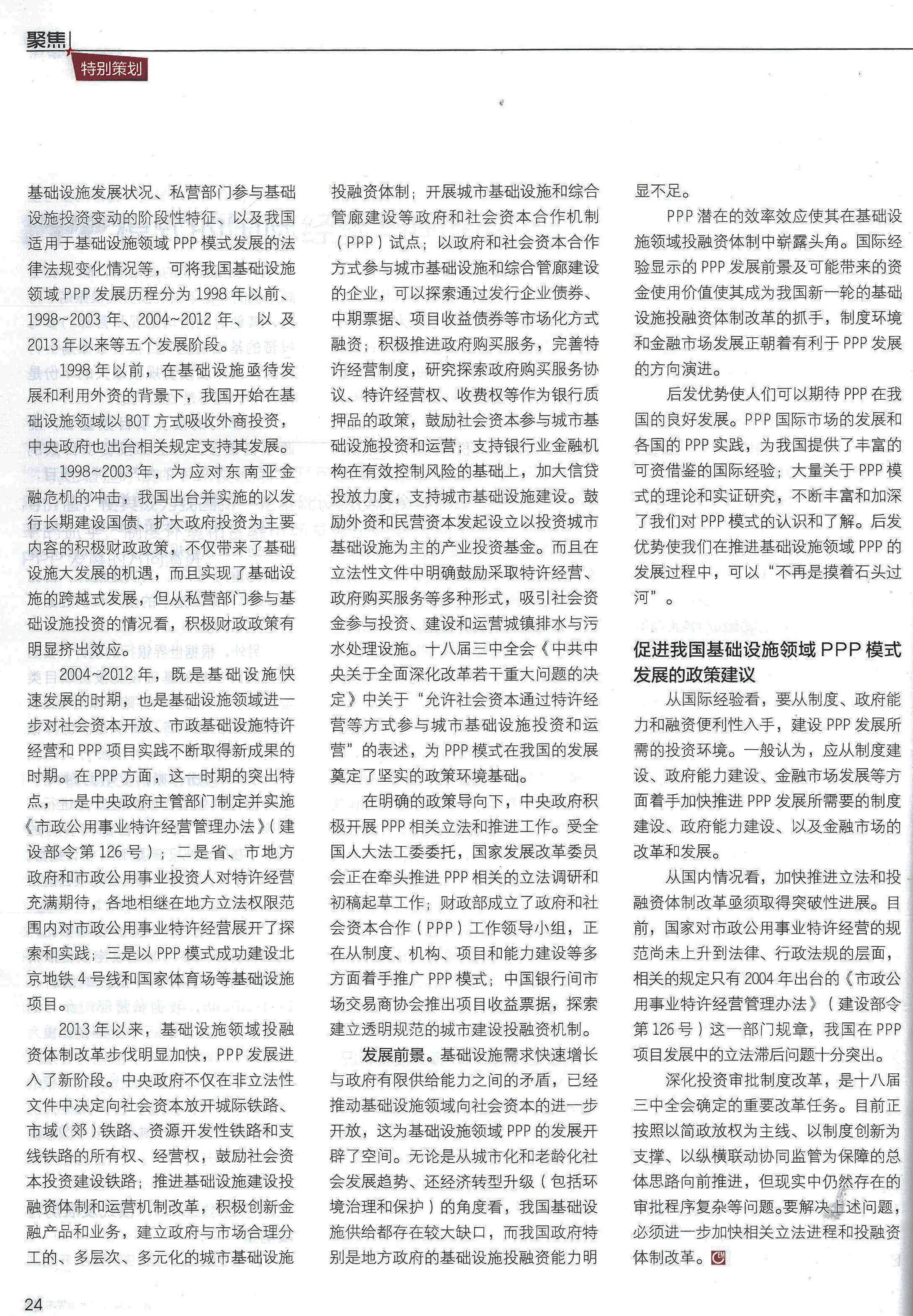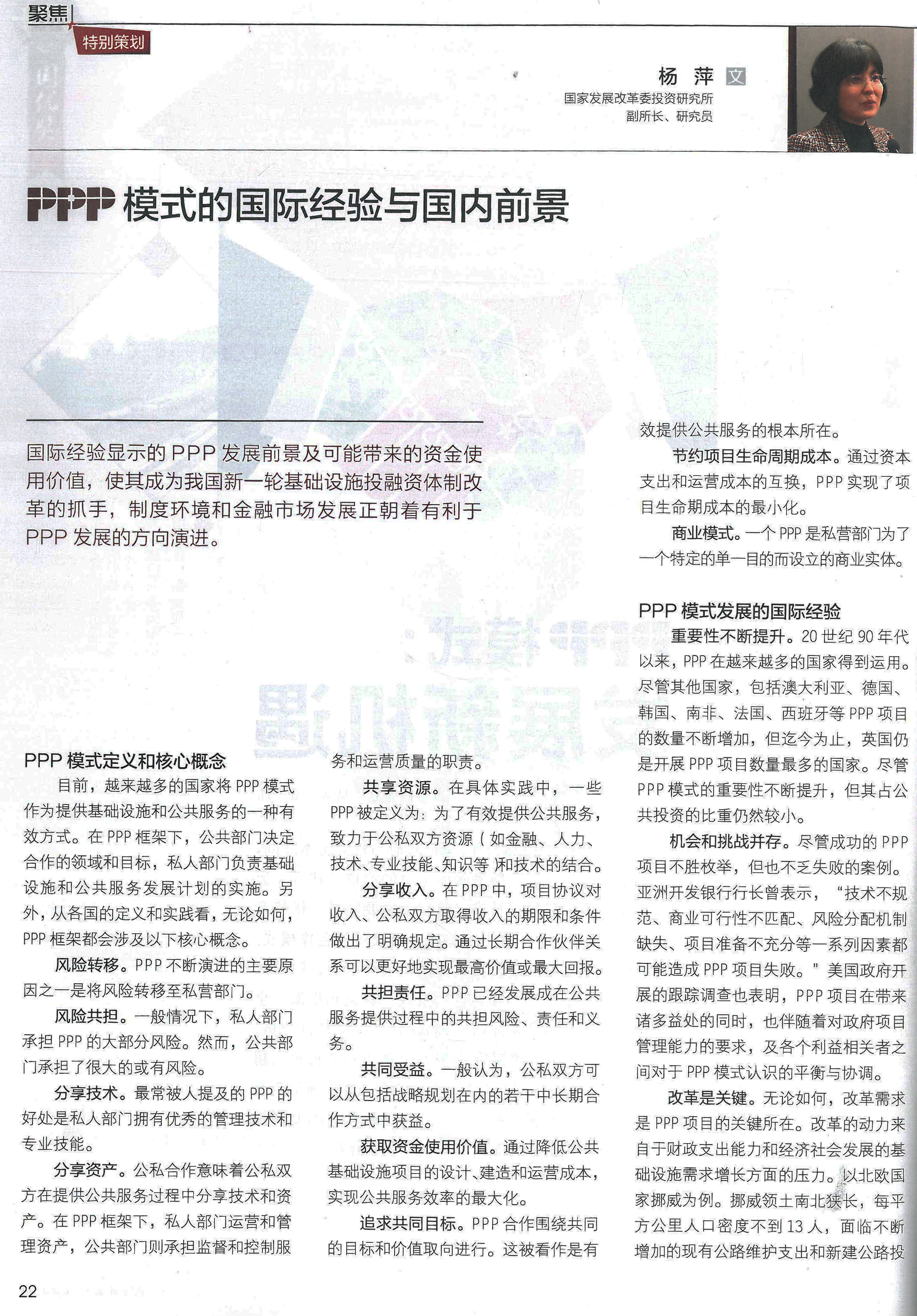 國(guó)際經(jīng)驗(yàn)顯示的PPP發(fā)展前景及可能帶來的資金使用價(jià)值,使其成為我國(guó)新一輪基礎(chǔ)設(shè)施投融資體制改革的抓手,制度環(huán)境和金融市場(chǎng)發(fā)展正朝著有利于PPP發(fā)展的方向演進(jìn)。