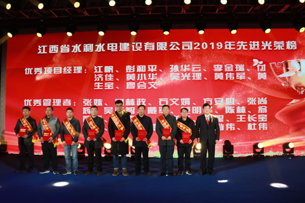 隨后,公司董事長王元旦等領(lǐng)導(dǎo)向潦河灌區(qū)解放閘壩除險(xiǎn)加固工程設(shè)計(jì)施工總承包(EPC)項(xiàng)目、盧旺達(dá)RUSUMO瀑布水電站項(xiàng)目等16個(gè)優(yōu)秀團(tuán)隊(duì),彭和平、黃生寶等10位優(yōu)秀項(xiàng)目經(jīng)理,張姝、張聰?shù)?0位優(yōu)秀管理者和應(yīng)怡超、程春鋒等40位優(yōu)秀員工予以表彰。感謝他們在過去的2019年為江西水建發(fā)展所作出的貢獻(xiàn)。