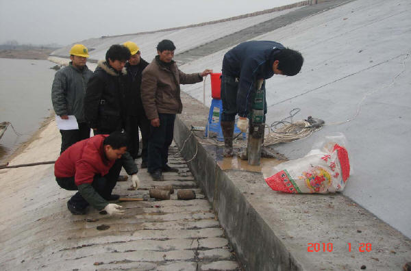 ※ 重點檢查水庫的險情是否已按設計要求給予消除;工程質量是否按規(guī)定檢驗,各項檢測數(shù)據(jù)是否滿足設計要求或相關標準:土方的壓實度、滲透系數(shù);混凝土(含預制塊)的抗壓強度、抗凍、抗?jié)B、彈性模量;砂漿的抗壓強度;灌漿的壓水試驗結果(透水率Lu):固結灌漿≮5%、帷幕灌漿≮10%。