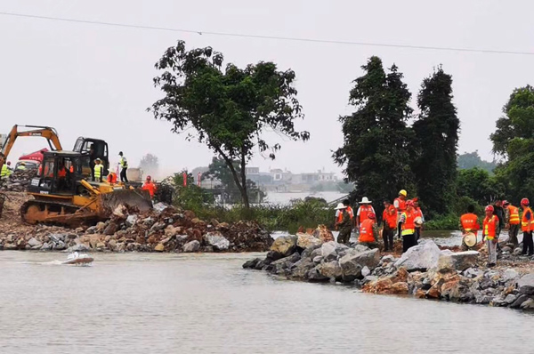 公司技術(shù)組專家張周平、王俊華、曾朝文,彭燦華等領(lǐng)導(dǎo)在現(xiàn)場進(jìn)行技術(shù)指導(dǎo)。專家組研究發(fā)現(xiàn),當(dāng)日水流過大,石料來源缺失,難以立即對決口進(jìn)行合攏施工。需要待水流平穩(wěn),石料來源落實后,才可開始。
