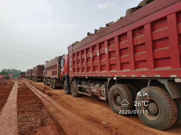 7月15日凌晨,貨車連夜運送石料入場,現(xiàn)場材料調(diào)度人員徹夜不休,僅借助貨車大燈照明,順利完成調(diào)度工作。當(dāng)日,決口成功封堵70米。