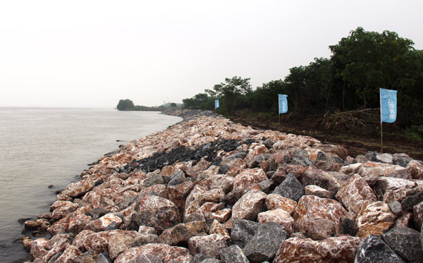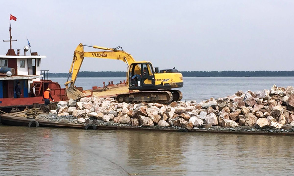 在2016年4月27日至2016年5月31日短短一個月時間內(nèi),我公司前線工作人員克服了大雨、大風(fēng)等諸多困難,于2016年5月5日完成了固岸除險階段施工,處理堤段崩岸險情得到控制;于2016年5月28日完成了粗拋固腳階段施工,處理堤段崩岸險情得到解除;至2016年5月31日該項目主體工程基本完成,剩余部分施工點也已進(jìn)入精拋成形階段施工。